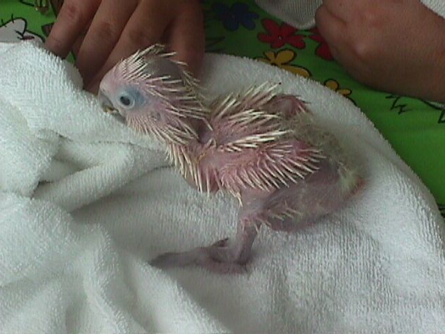 We intend to name all our house birds after South African beers and our first hand reared umbrella cockatoo is named "Hunter". We'll keep you posted on his growth and progress. |